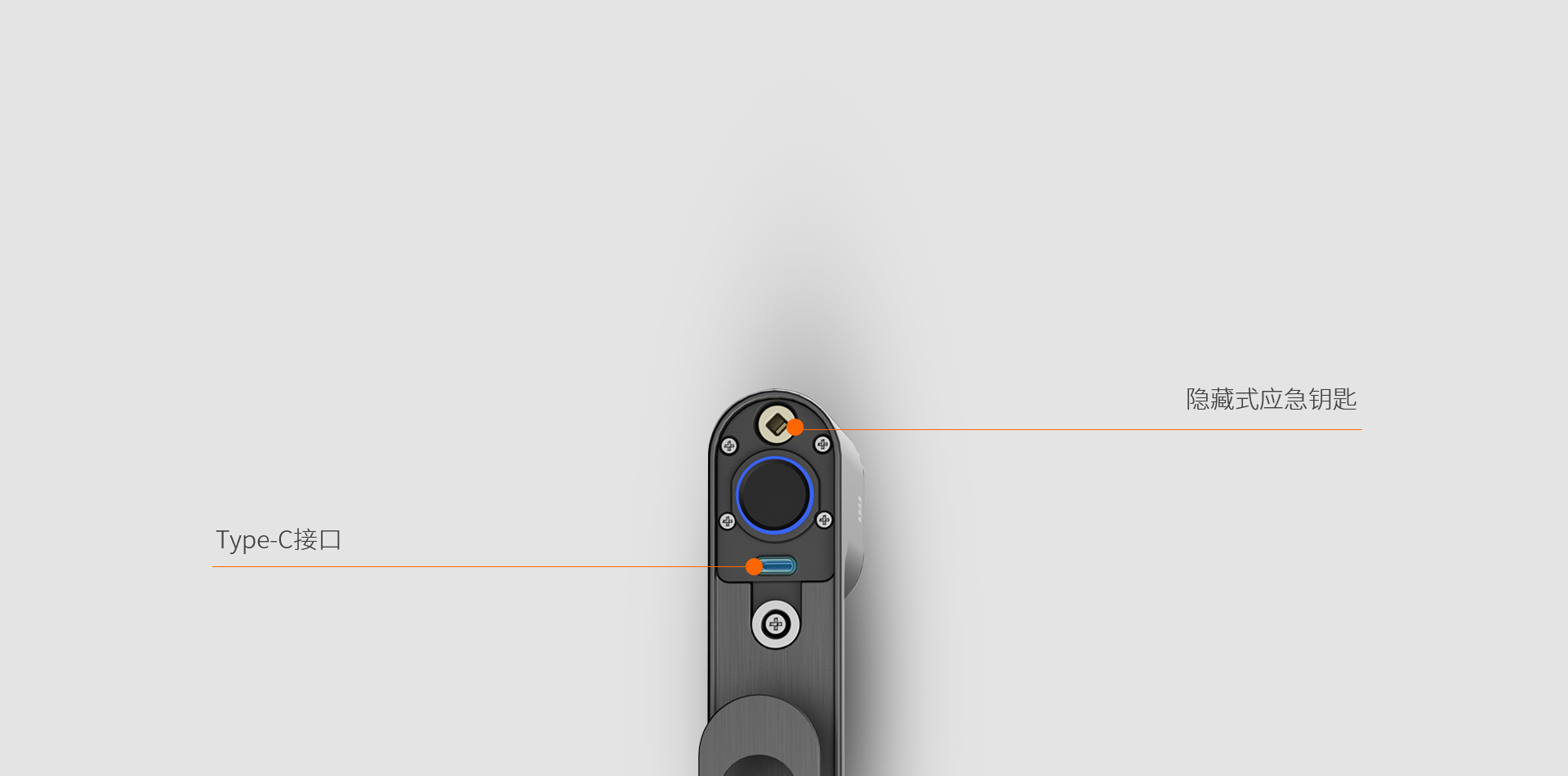 隱藏式應急鑰匙、隱藏式應急充電口,表面更美觀